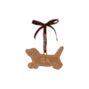 Wooden engraved ornament featuring “GA” logo and dachshund shape.